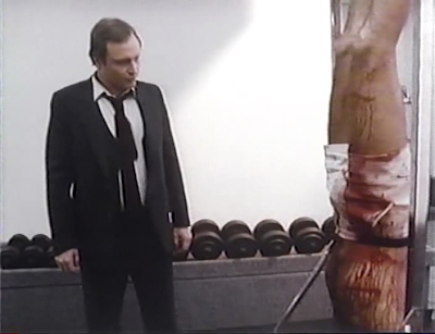 The film is off to a good start as the first killing is a homage to the Psycho shower scene except it is a male victim and I thought that was kind of a cool twist and a neat way to open a slasher flick that is supposedly aimed to a homosexual audience.After that setting the tone we are off to a male strip joint where a popular Mustached performer named He-Man shakes what his mother gave him for all the cities horny old ladies. After he leaves for the evening he is run down by a mysterious van and slashed to death. City detectives are quickly on the case and they notice that the letter M has been carved on both victims bodies when found. After these two first opening segments I thought I had picked a winner because it was delivering all the campiness I had hoped for yet still managed to keep a serious tone. Sadly that all changes pretty quickly as the film grinds to a halt as we meet the films main characters. One being a talk radio host Dave Miller who is feuding with local news paper writer A flamboyant older man named Alex Ramsey. The two are constantly at each others throats in debate over the notorious "M" Killer. While these two takes stabs at each other verbally, M continues to Stab several innocent victims throughout the city.